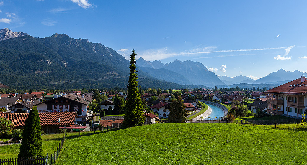 Diesen herrlichen Ausblick haben Sie von unserem Haus auf Wallgau, Karwendelgebirge und die Tiroler Berge.